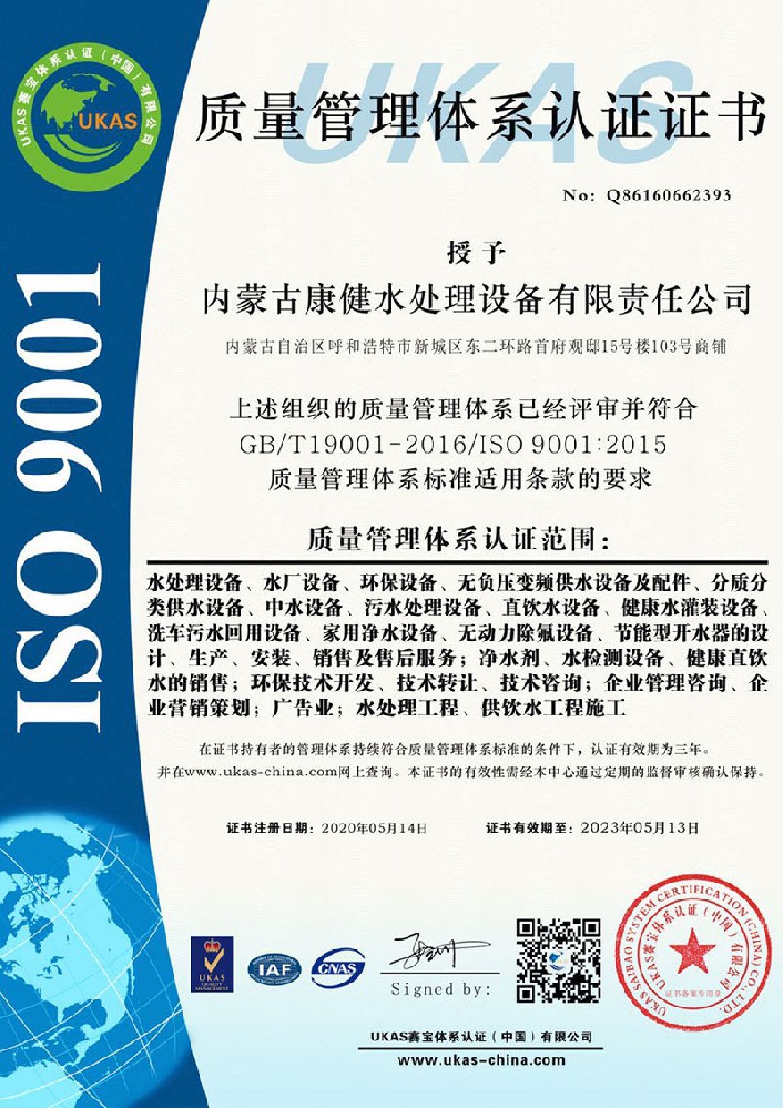 • 2021-04-29內蒙古呼和浩特康健水處理設備有限責任公司網站正式改版上線